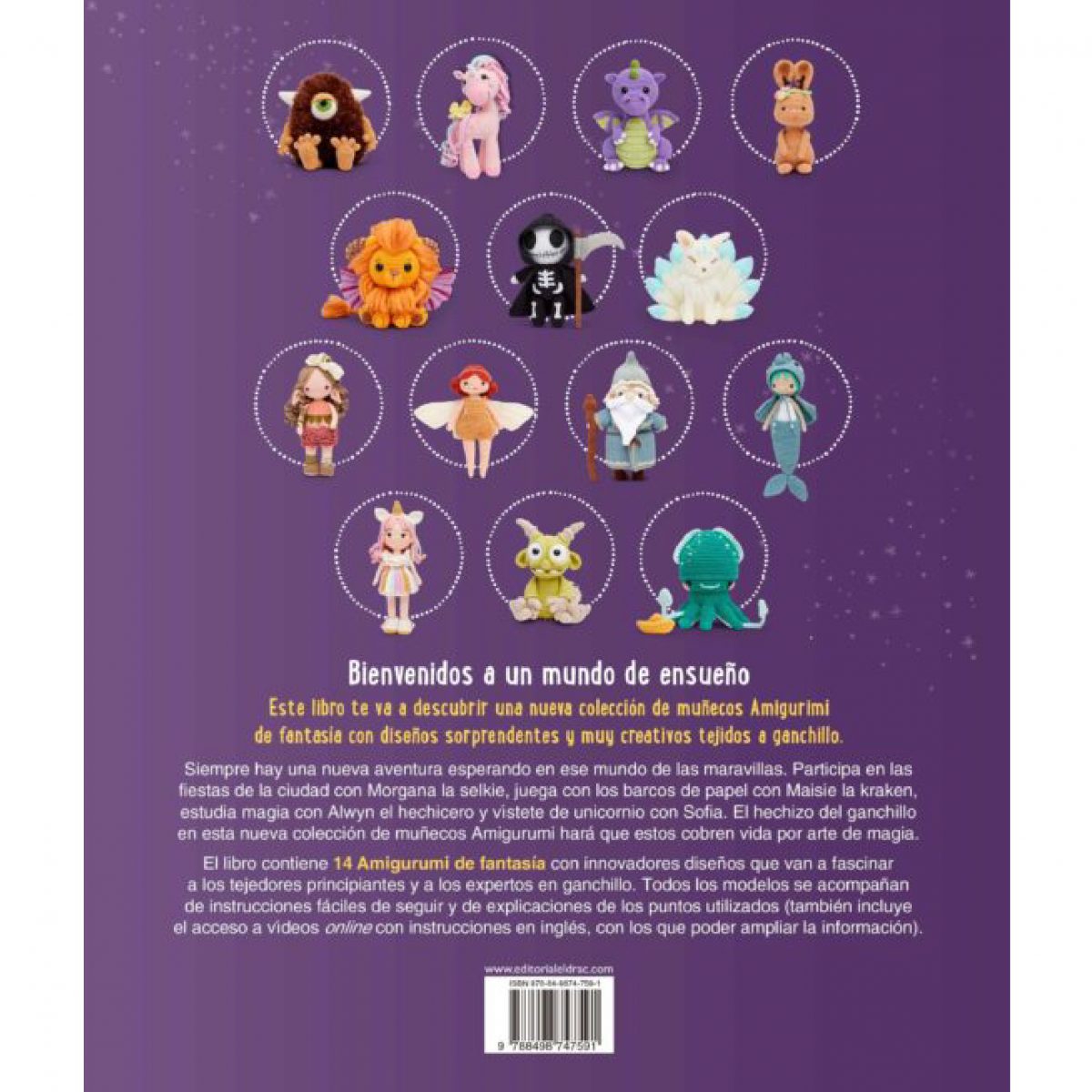 ¡El hechizo del ganchillo en esta nueva colección de muñecos Amigurumi hará que estos cobren vida por arte de magia! Los llamativos personajes de este mundo mágico encantarán a todos. Siempre hay una nueva aventura esperando en ese mundo de las maravillas. Participa en las fiestas de la ciudad con Morgana la selkie, juega con los barcos de papel con Maisie la kraken, estudia magia con Alwyn el hechicero y vístete de unicornio con Sofia.